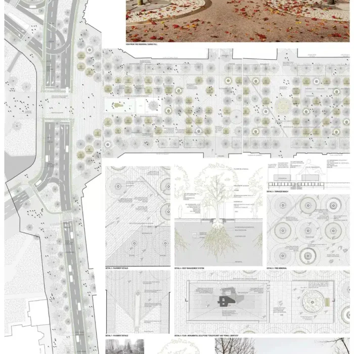 “Proiectul pornește de la ideea de a transforma piața existentă într-un parc memorial. Recunoscând Piața Victoriei ca fiind locul de naștere simbolic al revoluției române, proiectul urmărește să marcheze în memoria colectivă această semnificație istorică prin transformarea pieței într-un spațiu comemorativ. Prin combinarea esenței memoriale cu ambianța spațială a parcului, peisajul însuși devine recipientul pentru comemorarea revoluției. Copacii din piață simbolizează eroii martiri; ei încorporează amintiri încă de la plantarea lor, concepută ca un efort comunitar.